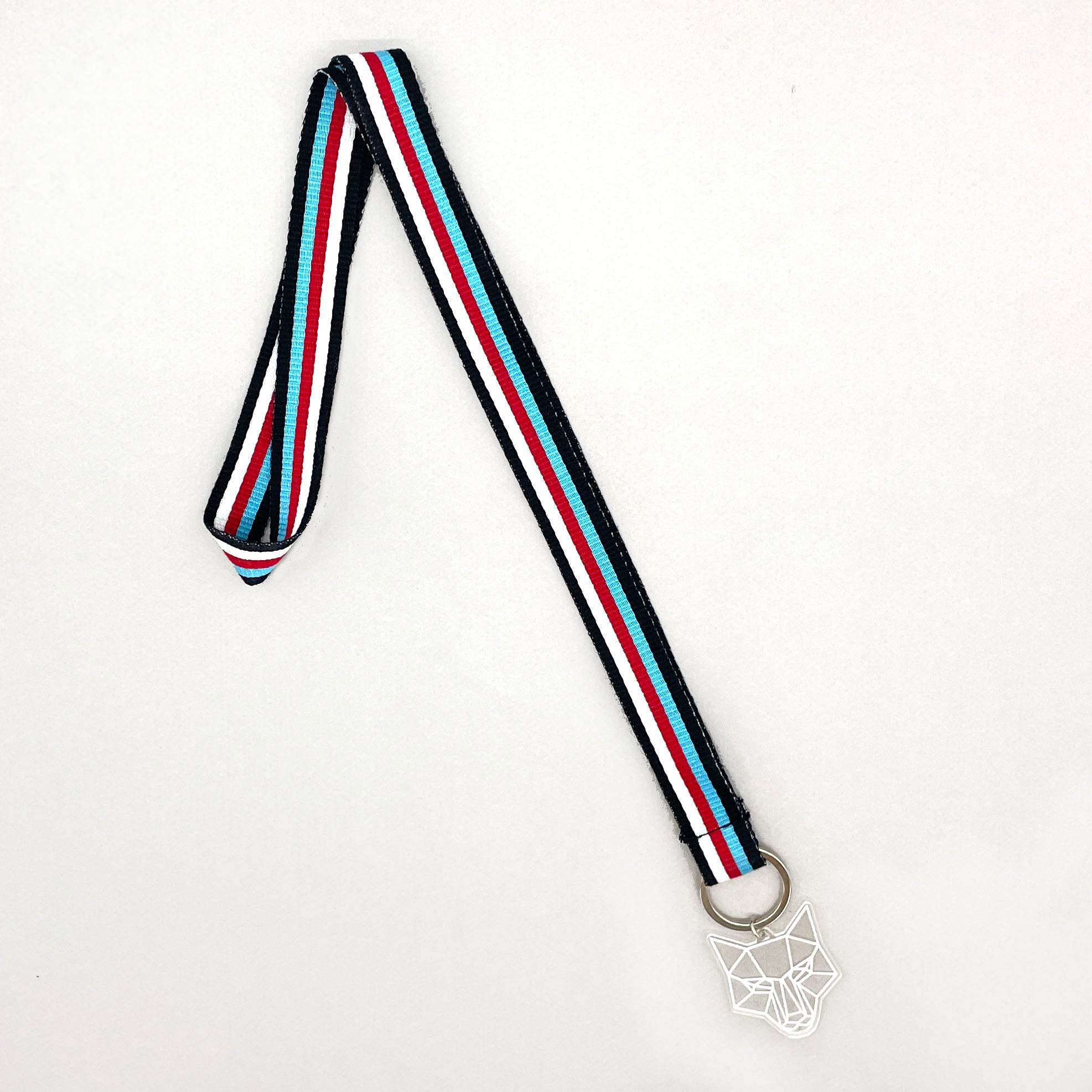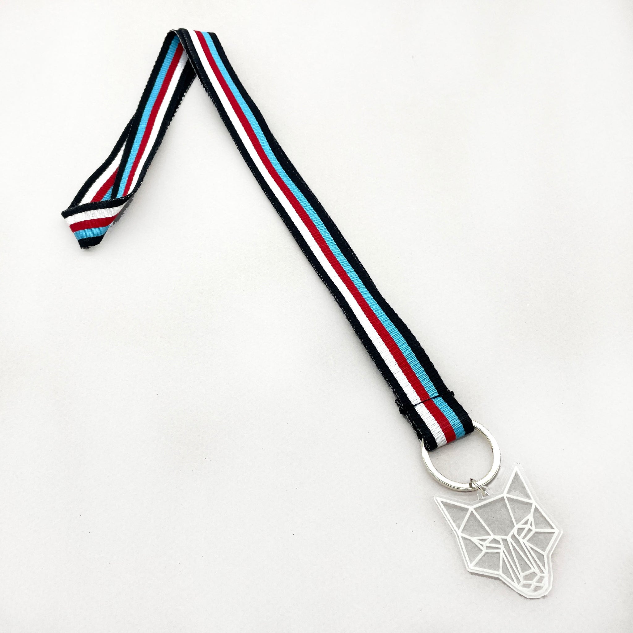 Χειροποίητο μπρελόκ λαιμού από συνθετικό ιμάντα φάρδους 2cm, μεταλλικό κρίκο και plexi glass διακοσμητικό στοιχείο.