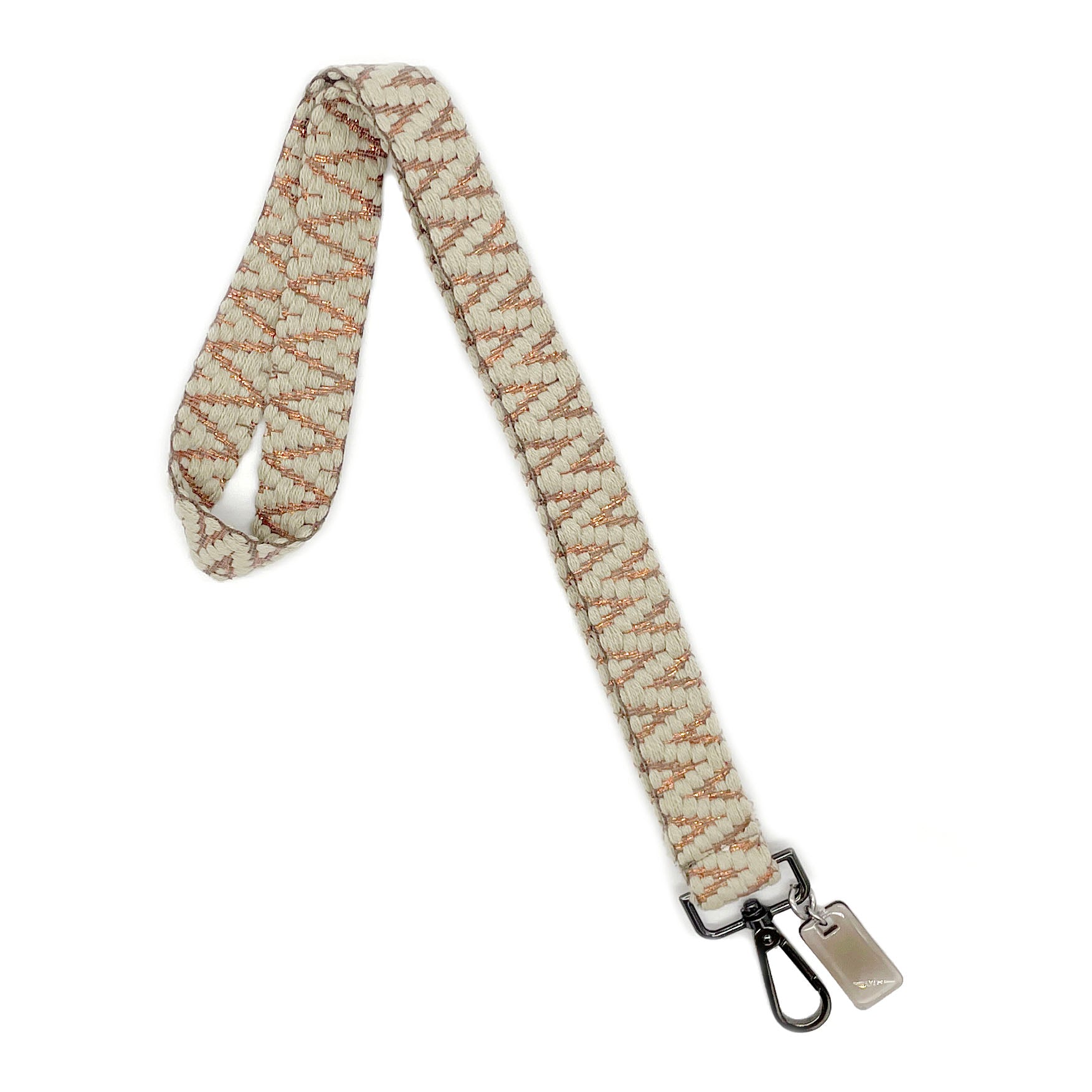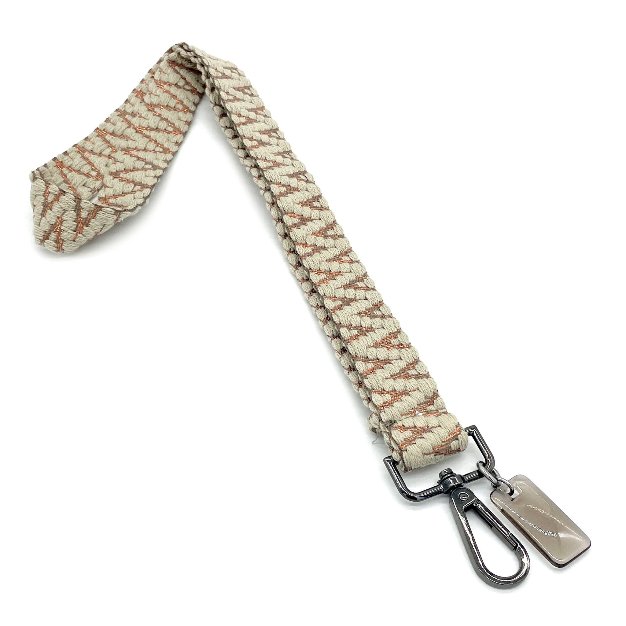 Χειροποίητο μπρελόκ λαιμού από υφαντό ιμάντα φάρδους 2.5cm, μεταλλικό γάντζο και plexi glass διακοσμητικό στοιχείο.