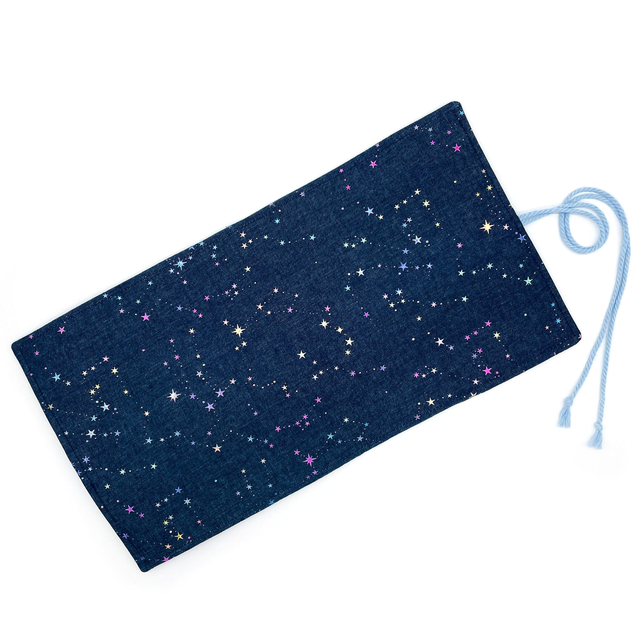 Συνδυάζει τζιν ύφασμα με foil αστεράκια εξωτερικά με μωβ ύφασμα εσωτερικά για περισσότερη ανθεκτικότητα.
