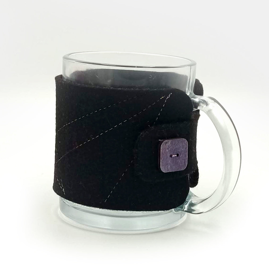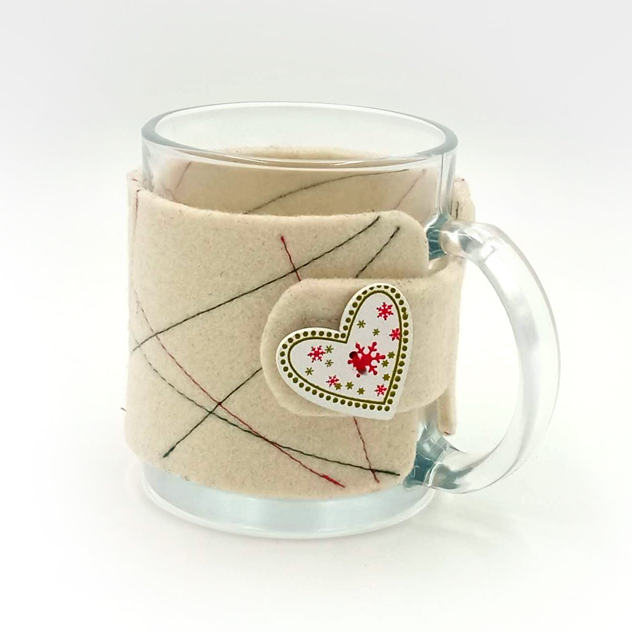Γυάλινη κούπα (320ml) με θήκη από τσόχα σε τρία χρώματα.