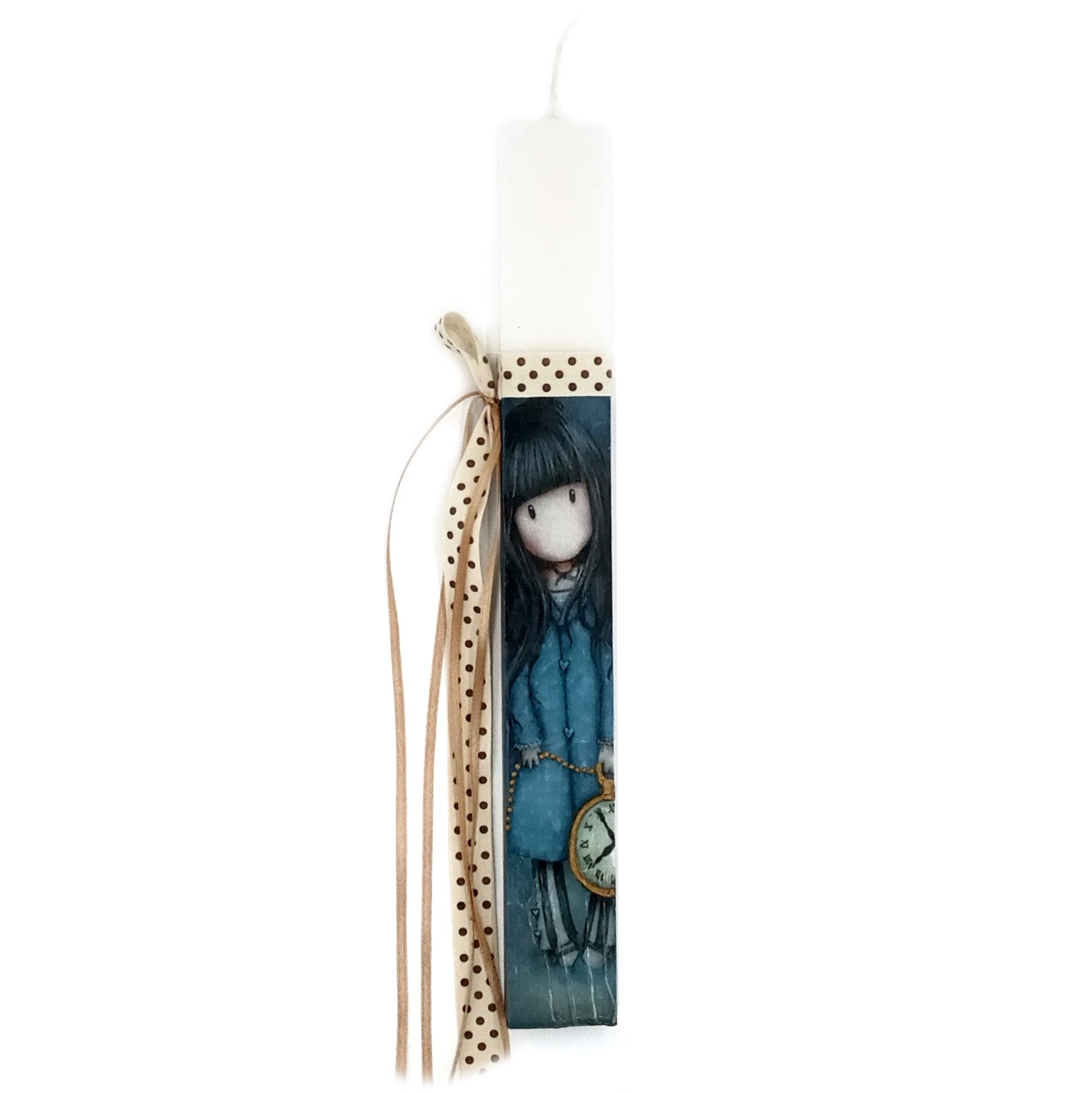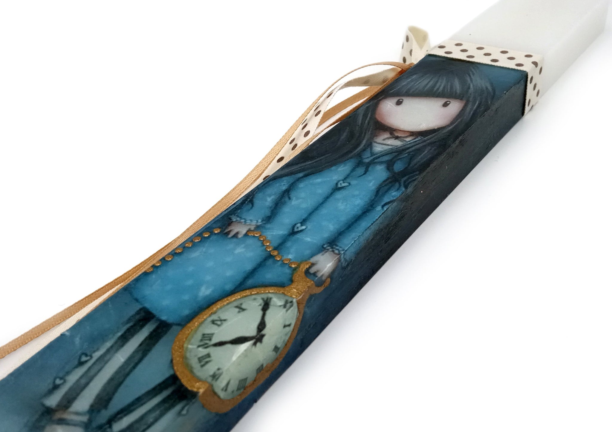 Πασχαλινή χειροποίητη λαμπάδα με πλακέ λευκό κερί ύψους 30cm, επεξεργασία decoupage και ζωγραφιστές λεπτομέρειες.