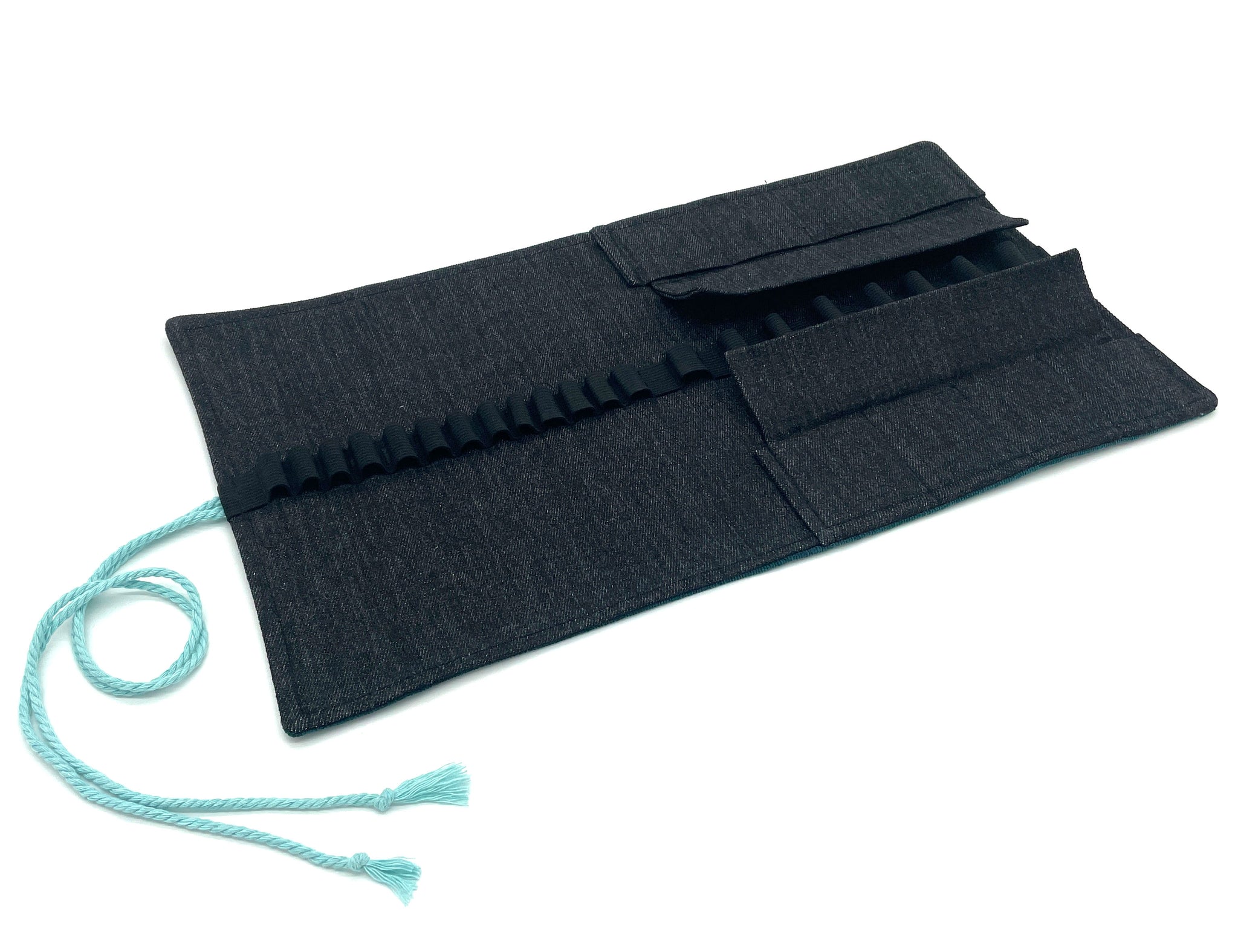 Διαθέτει θέσεις με λάστιχο για δεκατέσσερις ξυλομπογιές και οκτώ κηρομπογιές, καθώς επίσης οκτώ τσεπάκια με καπάκι για κηρομπογιές σε μορφή block.