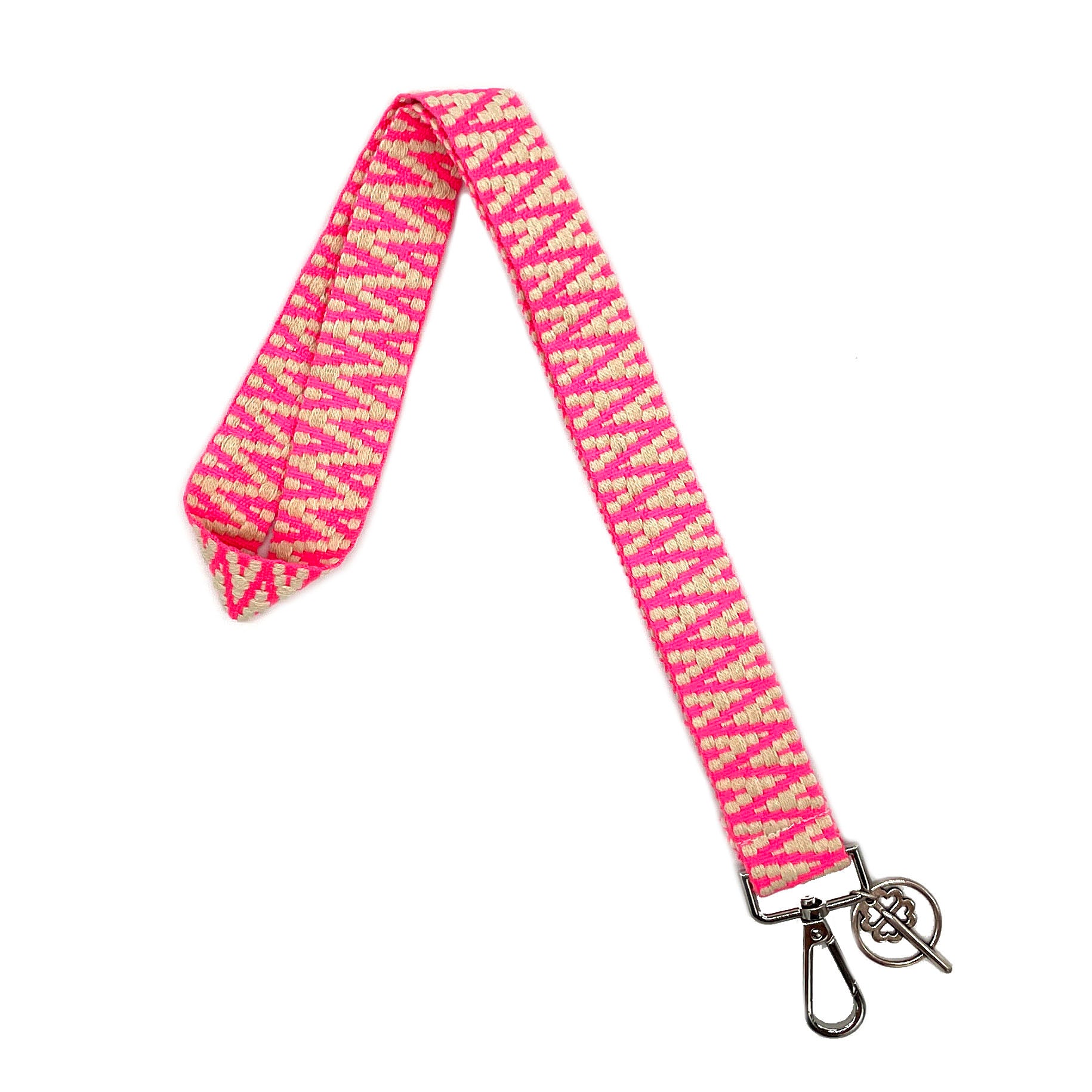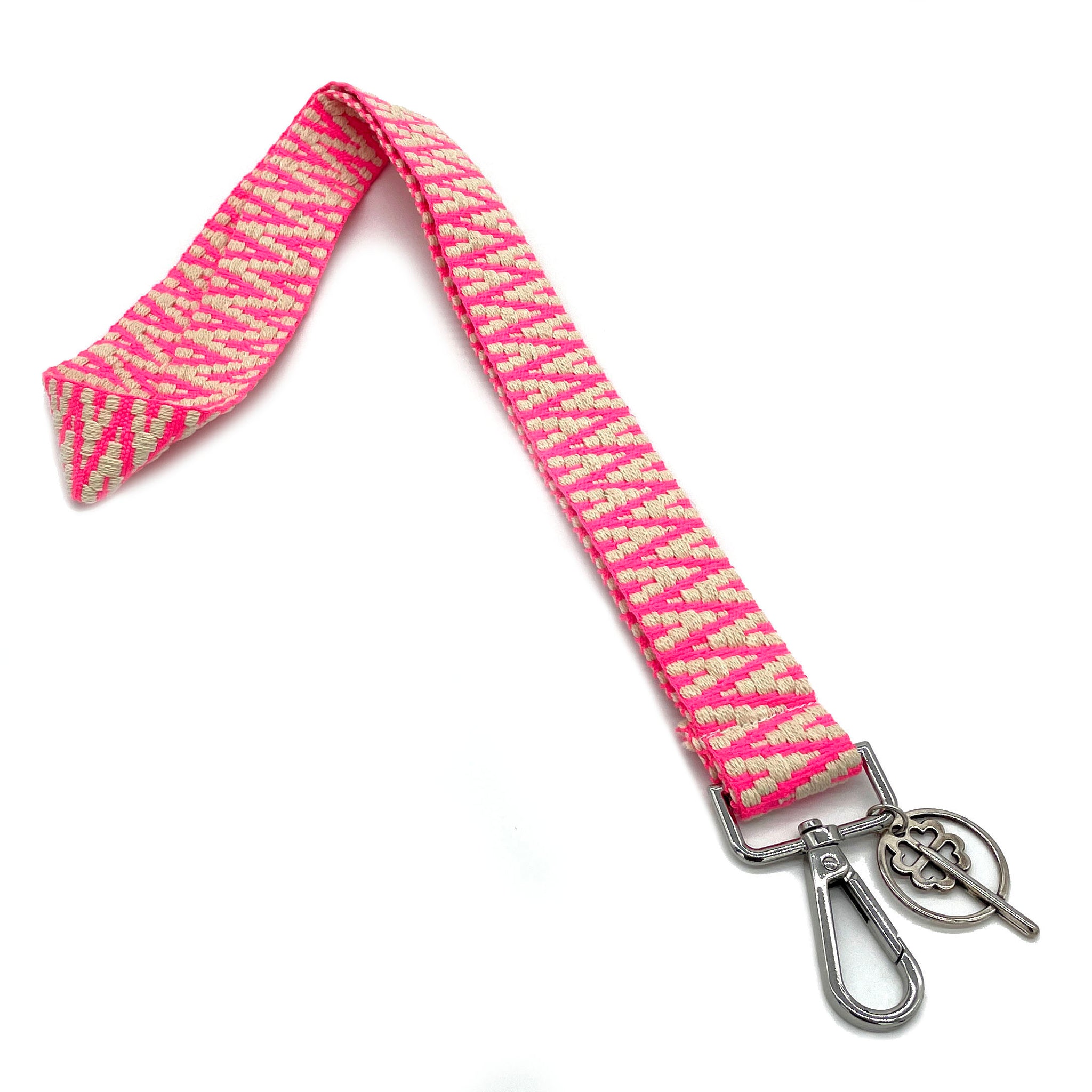 Χειροποίητο μπρελόκ λαιμού από υφαντό ιμάντα φάρδους 2.5cm, μεταλλικό γάντζο και διακοσμητικό στοιχείο.