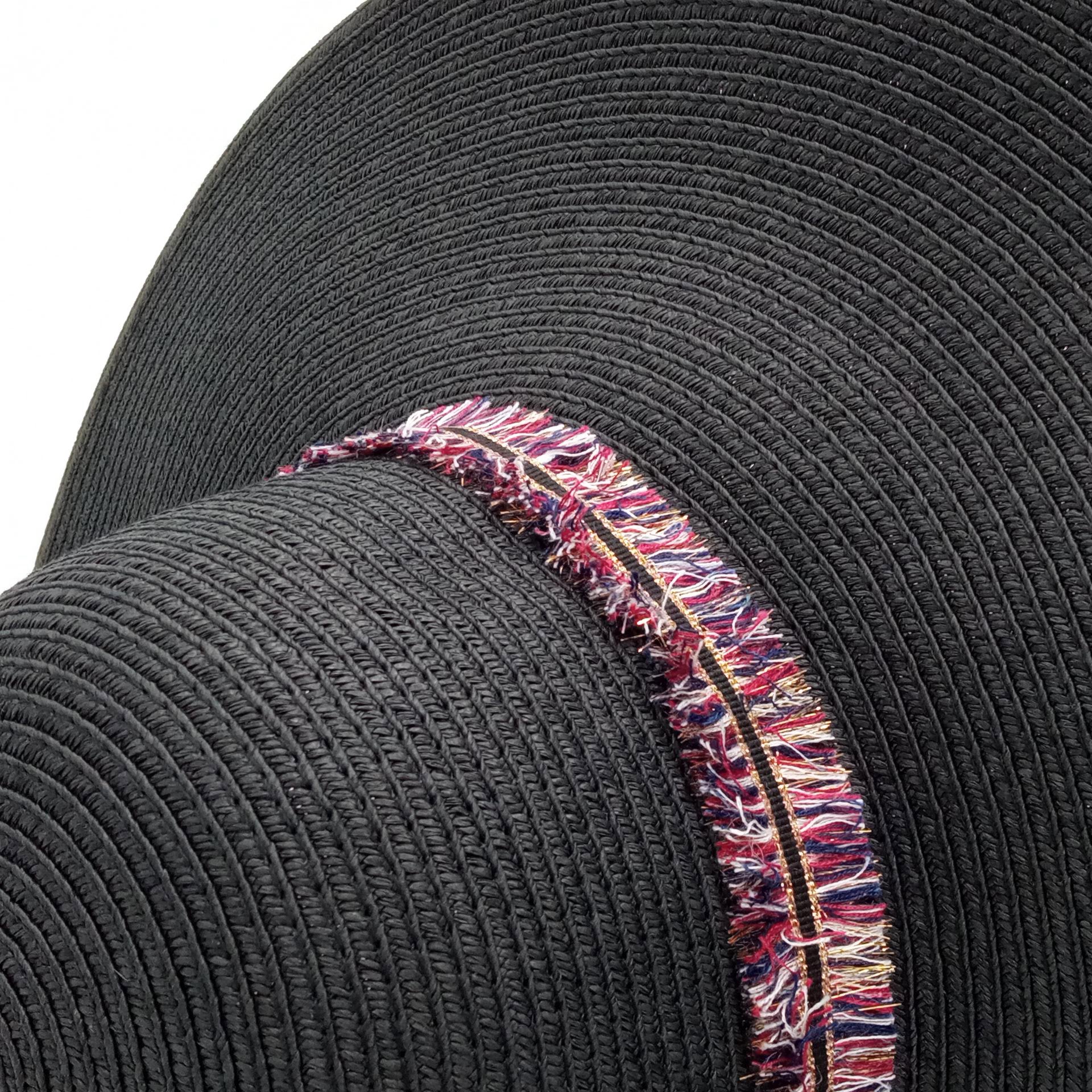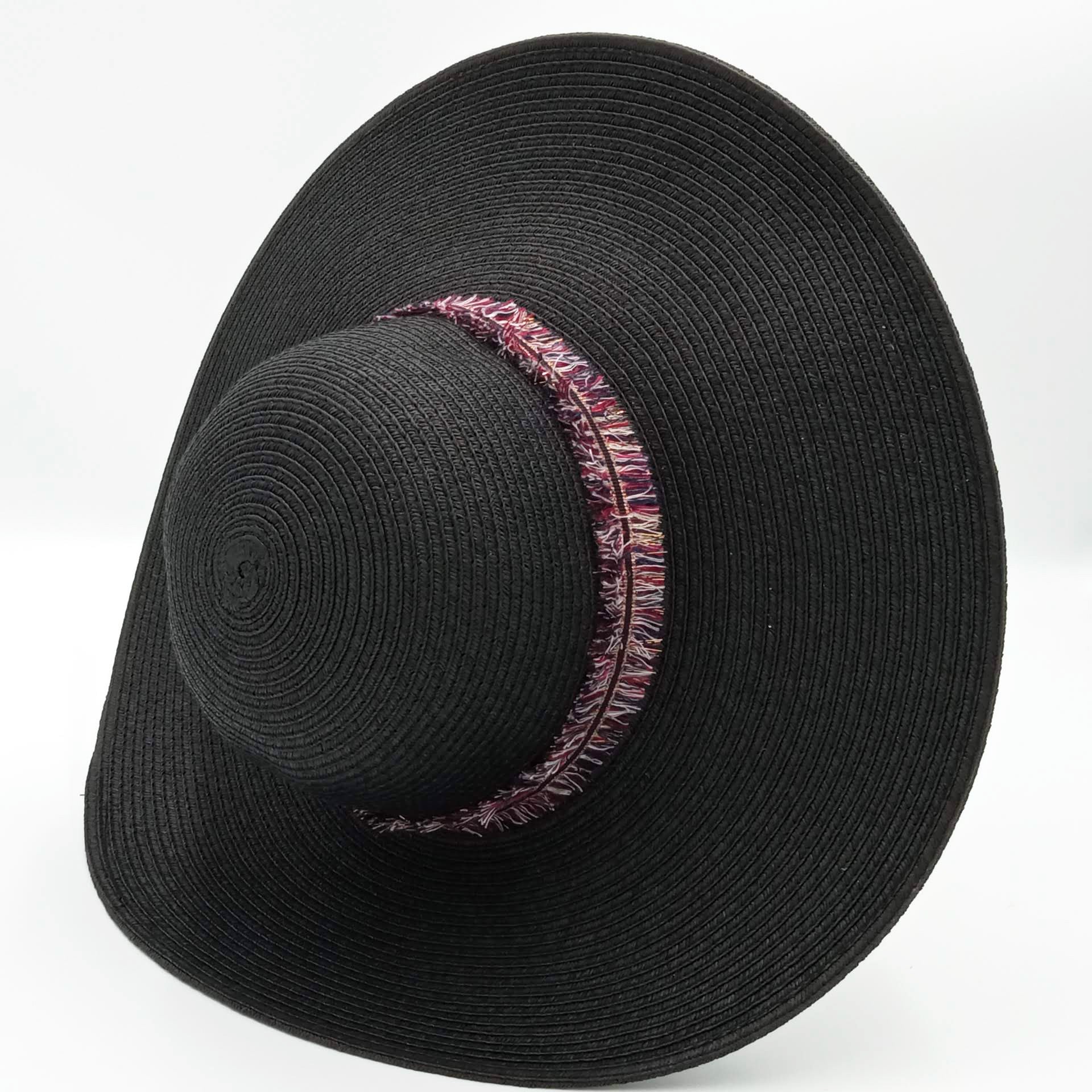 Μαύρο γυναικείο καπέλο διακοσμημένο με υφασμάτινη τρέσα με πολύχρωμα κρόσσια.
